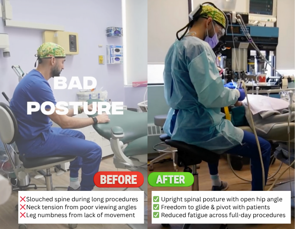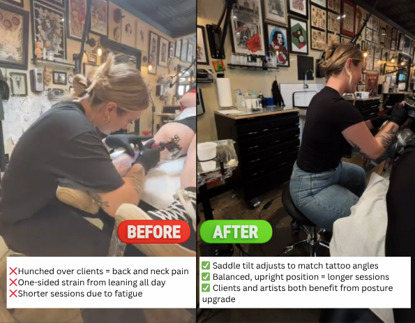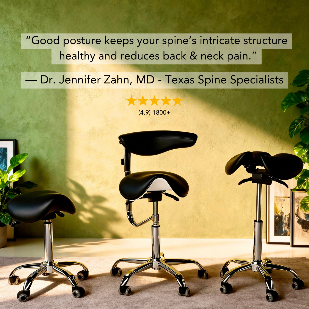 "Saddle seating supports the bodyโ€™s natural spinal curvature and open hip angle, reducing compression on lumbar discs and activating postural muscles that traditional chairs shut off.โ€