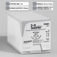 The 2-0 DOXIPRO™ (PDO) Violet 30" FS-1 suture, PD451, from ProNorth Medical, is crafted to provide veterinary surgeons with the highest level of precision and reliability. With an FS-1 reverse cutting needle and non-wicking violet monofilament, this suture is optimized for effective and secure wound closure. It is specially designed for veterinary practices where visibility, strength, and patient recovery are of utmost importance. Trust in DOXIPRO™ for sutures that enhance surgical outcomes and promote the well-being of animal patients.